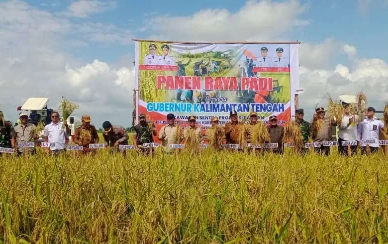 Kuala Kapuas, kaltengtimes.co.id – Panen Raya Padi yang dipusatkan di desa Terusan Makmur Kecamatan Bataguh Kabupaten Kapuas dilaksanakan hari ini Senin (14/7/2025) dihadiri dan dilakukan secara simbolis oleh Gubernur Kalimantan Tengah H. Agustiar Sabran dan Wakil Gubernur Kalimantan Tengah Edy Pratowo.