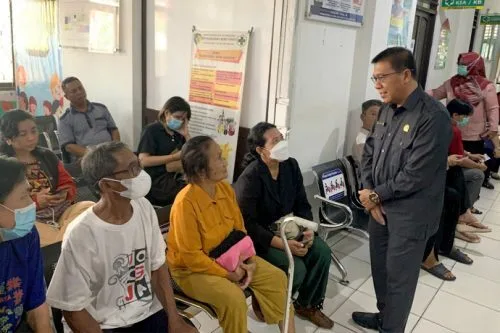 Subandi juga berdiskusi dengan pasien yang tengah mengantre untuk menyerap aspirasi terhadap pelayanan yang diberikan petugas di Puskesmas Bukit Hindu itu.