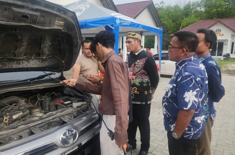 Palangka Raya. Kaltengtimes.co.id – Badan Pendapatan Asli Daerah (Bapenda) Prov. Kalteng meluncurkan penggunaan alat cek fisik kendaraan bermotor elektronik. Penggunaan perdana alat cek fisik tersebut dilaksanakan di Kantor Samsat Palangka Raya oleh petugas 2 orang teknis yang disaksikan langsung Kepala Bapenda Prov. Kalteng Anang Dirjo dan jajarannya, Kamis (21/8/2025).