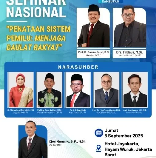 Berangkat dari realita tersebut, Universitas Muhammadiyah Jakarta (UMJ) pada Jumat, 5 September 2025 mendatang akan menggelar Seminar Nasional bertajuk “Penataan Sistem Pemilu Menjaga Daulat Rakyat” di Hotel Jayakarta Hayam Wuruk, Jakarta.