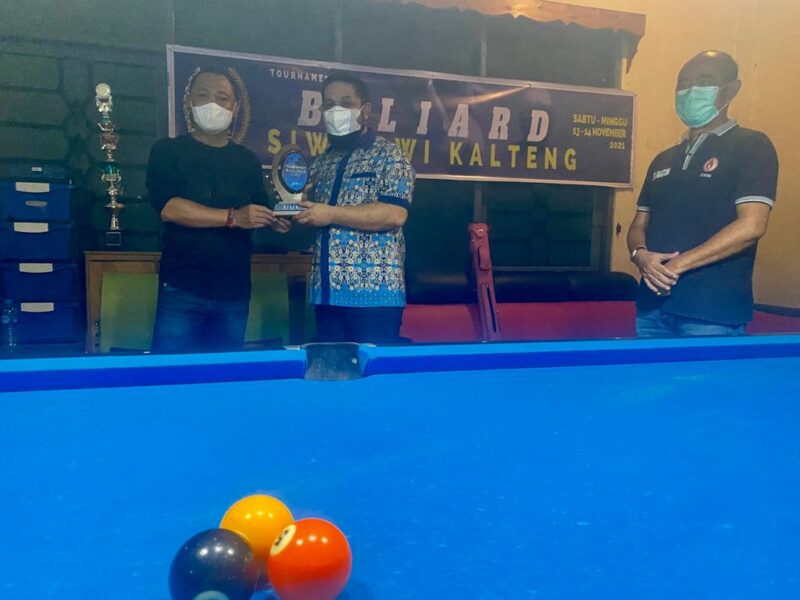 PALANGKA RAYA. Kaltengtimes.co.id — Ketua KONI Kalteng H. Eddy Raya Samsuri mendukung suksesi Altet PWI Kalteng dalam meningkatkan latihan dan berbagai kesiapan menghadapi Pekan Olahraga Wartawan Nasional (Porwanas) di Jatim tahun 2022 mendatang, dengan berbagai kesiapan turnamen hingga latihan. Pria yang juga menjabat Bupati Barsel ini hadir dalam pelaksanaan turnamen Biliar SIWO PWI Kalteng, yang dilaksanakan selama 1 hari, di Krakatau Biliar, Palangka Raya, Sabtu (13/11). “Kami apresiasi SIWO PWI Kalteng menyelenggarakan turnamen internal wartawan baik Biliar dan Futsal yang berjalan dengan lancar dengan sesuai prokes untuk meningkatkan fisik dan kualitas atlet PWI untuk menghadapi kesiapan Porwanas. Kami mendukung suksesi SIWO PWI Kalteng dalam upaya kesiapan Porwanas,” ucap Eddy Raya, usai menyerahkan piala kepada para pemenang Biliar. Eddy menyebut atlet wartawan tugasnya cukup berat, selain tugas sehari hari sebagai penacri dan pembuat berita juga sebagai atlet sehingga dibutuhkan kondisi fisik yang fit. “Tingkatkan latihan secara mandiri sehingga fisik terjaga dan pekerjaan juga dapat berjalan dengan baik. Kami yakin kawan kawan wartawan dapat mampu meningkatkan kualitas fisik dan kemampuan untuk sukses Porwanas mendatang,” ucapnya.
