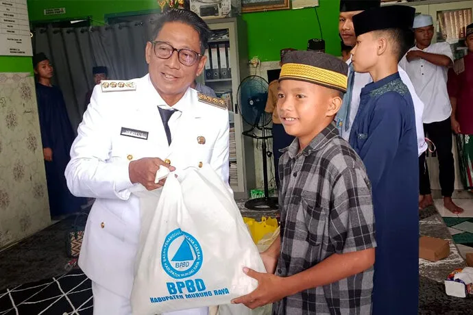Bupati Murung Raya Heriyus bersama Wakil Bupati Rahmanto Muhidin turun langsung menyerahkan bantuan sosial berupa paket sembako dan uang tunai kepada anak-anak di Panti Asuhan Muhammadiyah Puruk Cahu, yang menjadi lokasi pertama dalam rangkaian kunjungan tersebut. Mereka didampingi oleh Plt. Sekda Sarwo Mintarjo, Kepala Bapenda Ernawati, serta sejumlah pejabat perangkat daerah lainnya.
