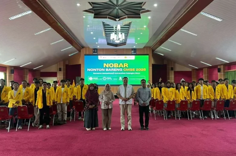 PALANGKA RAYA – Suasana Aula Rahan Lantai 2 Rektorat Universitas Palangka Raya, Jumat (17/10/2025), tampak penuh semangat. Sebanyak 150 peserta dari kalangan mahasiswa dan masyarakat umum antusias mengikuti kegiatan Nonton Bareng (Nobar) Capital Market Summit & Expo (CMSE) 2025, hasil kolaborasi antara Bursa Efek Indonesia (BEI) Kalimantan Tengah, Masyarakat Ekonomi Syariah (MES) Kalimantan Tengah, dan Forum Kajian Penulisan Hukum (FKPH) Universitas Palangka Raya.