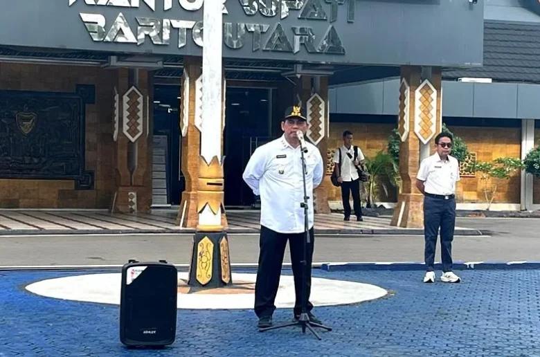 MUARA TEWEH, Kaltengtimes.co.id – Bupati Barito Utara, H. Shalahuddin, memimpin apel pagi di halaman Kantor Bupati pada Rabu (29/10/2025). Apel ini diikuti oleh Aparatur Sipil Negara (ASN) di lingkungan Sekretariat Daerah, dengan tujuan memperkuat kedisiplinan dan etika dalam melaksanakan pelayanan publik.
