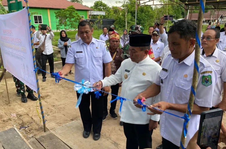 Acara peresmian ditandai dengan pengguntingan pita oleh Bupati Wiyatno yang disaksikan Kepala Desa Anjir Mambulau Barat, Peltu (Purn) Rahmadi, beserta tamu undangan.