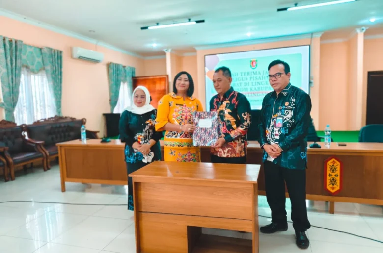 KASONGAN – Badan Kepegawaian dan Pengembangan Sumber Daya Manusia (BKPSDM) Kabupaten Katingan menggelar Serah Terima Jabatan (Sertijab) Sekretaris Badan (Sekban) dan Kepala Bidang (Kabid), Jumat siang (14/11), di aula kantor BKPSDM setempat. Kegiatan dipimpin langsung oleh Plt Kepala BKPSDM, Marjuni.