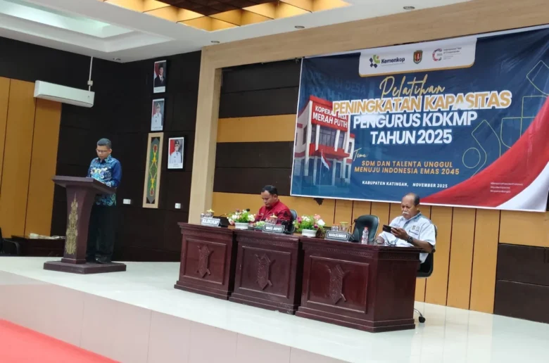 KASONGAN – Wakil Bupati Katingan, Firdaus, menegaskan pentingnya penerapan hasil pelatihan bagi seluruh pengurus Koperasi Desa dan Kelurahan Merah Putih (KDKMP) se-Kabupaten Katingan. Hal itu ia sampaikan saat menutup rangkaian pelatihan penguatan kapasitas pengurus KDKMP yang berlangsung di aula Bappedalitbang, Kamis (20/11).