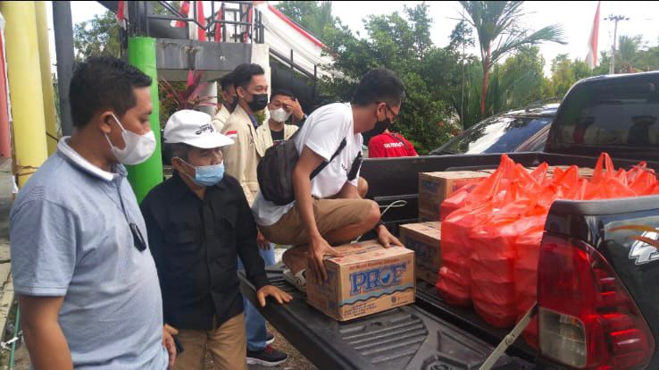 Bantuan makanan siap saji diteruskan penyalurannya bagi warga terdampak banjir di wilayah Puntun. (Photo/Ni)