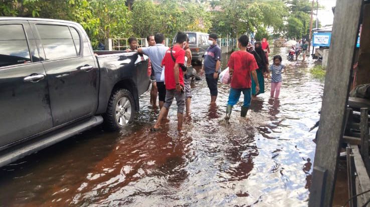 PALANGKA RAYA.Kaltengtimes.co.id – Warga terdampak banjir di wilayah Puntun dan Danau Rangas terus mendapatkan bantuan. Kali ini bantuan berupa makanan siap saji dan beberapa dus air mineral disalurkan jajaran Solidaritas Kemanusiaan Huma Betang (SKHB) bersama Organisasi Kewartawanan Kalimantan Tengah serta Mahasiswa dari berbagai Perguruan Tinggi. ”Bantuan berupa makanan siap saji seperti ini sekarang sangat dibutuhkan warga terdampak banjir di Puntun dan Danau Rangas,’’ kata Sigit Wido, Koordinator Lapangan SKHB, kepada sejumlah awak media disela menyerahkan bantuan bagi warga korban banjir tersebut, Kamis (18/11) pagi. Menurut Sigit, selain kepedulian jajaran SKHB, bantuan yang dikemas dalam Nasi Kemerdekaan bagi warga terdampak banjir ini juga didukung oleh Organisasi Kewartawanan di daerah ini, diantaranya PWI Cabang Kalteng, IJTI, SMSI, LKBN Antara, TVRI, Dayak TV, iNews dan AJV Kalteng, termasuk beberapa mahasiswa dari Perguruan Tinggi di Palangka Raya. ‘’Bantuan kemanusiaan juga sebagai wujud empati kita bersama untuk meringankan saudara-saudara kita kita yang tertimpa bencana musibah banjir,’’ lanjut anggota DPRD Kota Palangka Raya ini. Sigit menambahkan, penyaluran bantuan bagi warga korban banjir ini adalah sesuai instruksi Ketua Umum SKHB Kalteng, Haji Agustiar Sabran, sebagai bentuk kepeduliaan sesama, khususnya bagi warga terdampak banjir. Turut hadir dalam penyaluran bantuan tersebut, Ketua PWI Kalteng, HM Haris Sadikin, Ketua dan Sekretaris IJTI, H.Tantawi Jauhari dan Imam Mangkunegara, Ketua SMSI, H.Sutr
