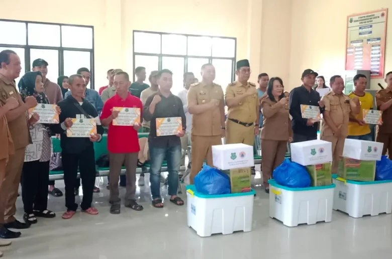 Penyaluran bantuan dipimpin langsung Wakil Bupati Kapuas Dodo, didampingi Kepala Pelaksana BPBD Kapuas Pangeran Sojuaon Pandiangan, di Kantor BPBD Kapuas, Senin (23/2/2026).