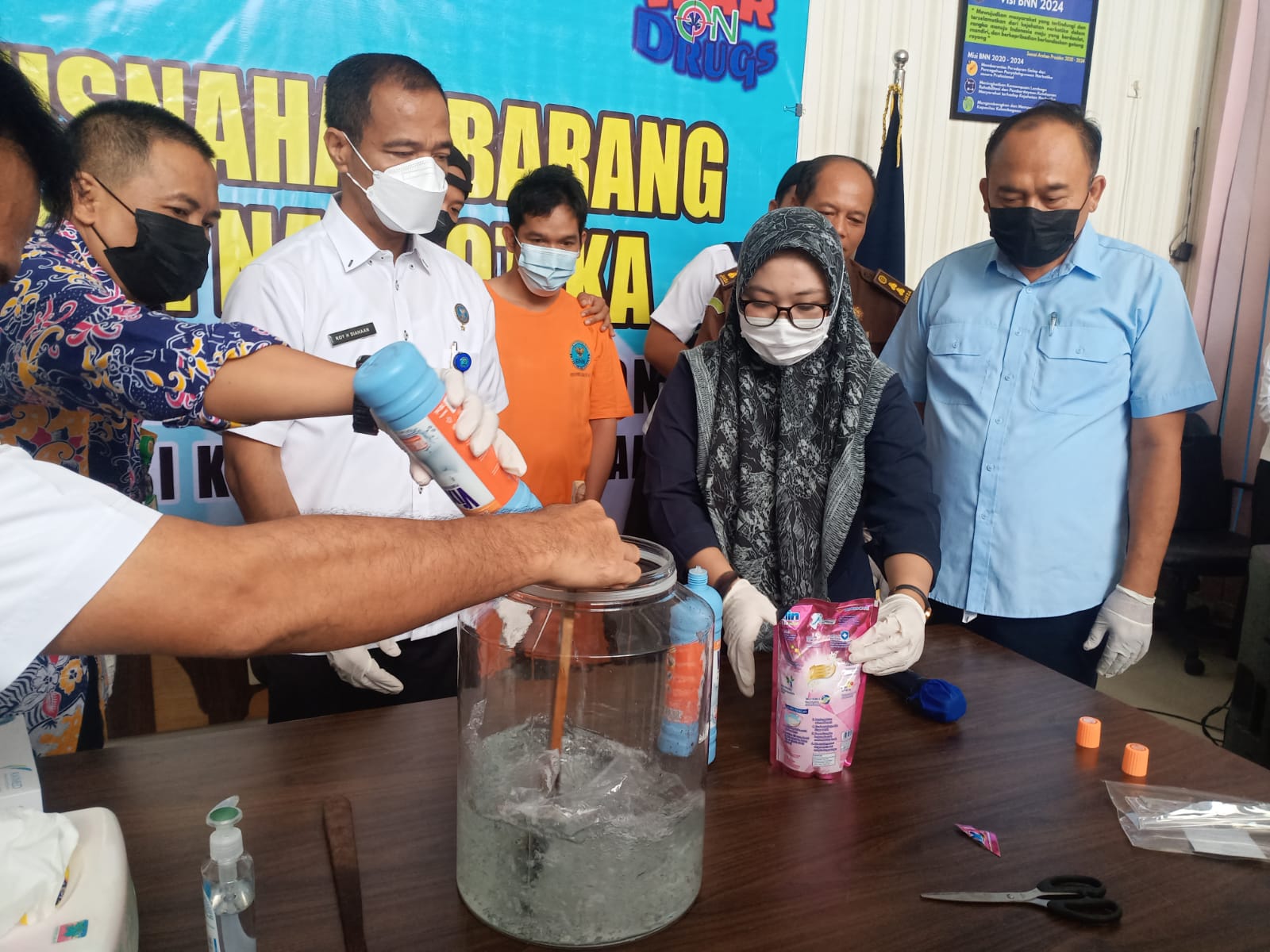 Selanjutnya, sabu tersebut dimasukkan ke dalam tong berisi air dilarutkan kemudian dicampur cairan. Tujuannya supaya barang bukti tersebut tidak bisa digunakan lagi.