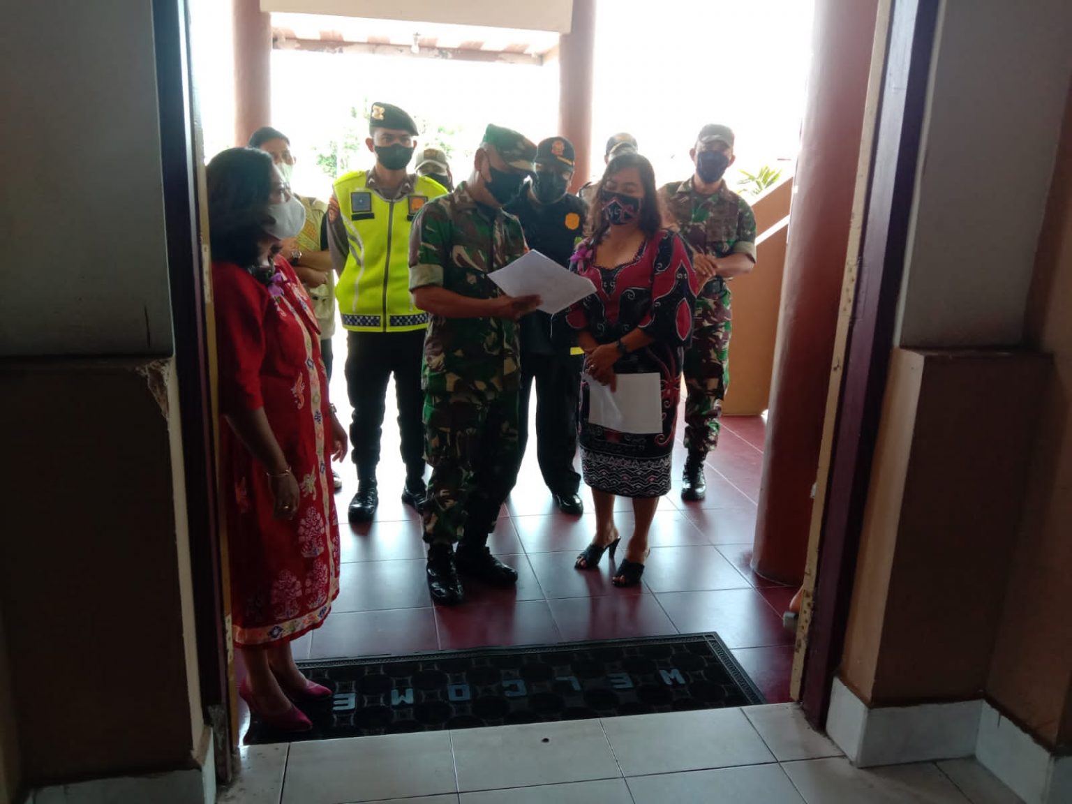 “Pada kegiatan ini petugas gabungan melaksanakan kegiatan rutin penerapan prokes sesuai Perwali Nomor 26 Tahun 2020, serta memberikan himbauan kepada jemaat yang sedang melaksanakan ibadah agar tetap disiplin protokol kesehatan”, kata Letda Rodyansah.
