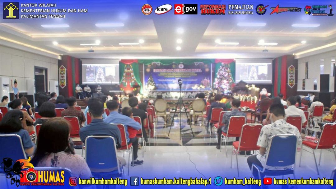 Bertempat di Aula Mentaya Kanwil Kemenkumham Kalteng Ibadah dan Perayaan Natal juga di laksanakan secara Virtual yang di ikuti seluruh umat Kristiani baik itu Petugas maupun Warga Binaan Pemasyarakatan (WBP) di seluruh Unit Pelaksana Teknis Pemasyarakatan dan Imigrasi di Jajaran Kanwil Kemenkumham Kalteng dengan tetap menerapkan Protokol Kesehatan Ketat.