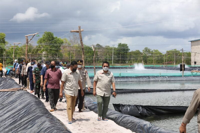 PALANGKA RAYA. Kaltengtimes.co.id –Menindaklanjuti Forum Discussion Group (FGD) Prospek dan Investasi Tambak Udang Vaname di Provinsi Kalimantan Tengah, Asisten Bidang Perekonomian dan Pembangunan Setda Prov. Kalteng Leonard S. Ampung meninjau pembangunan shrimp estate/ Udang Vaname di sejumlah tempat di Kabupaten Sukamara, Sabtu (11/12).