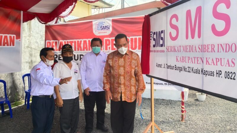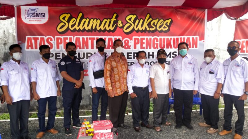 PALANGKA RAYA. Kaltengtimes.co.id – Kepenguran Serikat media Siber Indonesia (SMSI) Kabupaten Kapuas Periode 2021-2025, secara resmi dikukuhkan oleh Ketua SMSI Provinsi Kalimantan Tengah, H.Sutransyah, Minggu (19/12) pagi, bertempat Gedung Olahraga, Jalan Tambun Bungai, Kapuas. ‘’Saya sangat menyambut positif dengan dibentuknya SMSI Kabupaten Kapuas, meski dilaksanakan secara sederhana. Saya ingatkan kembali dengan terbentuknya SMSI ini sebagai wadah perusahaan media, para pengurus dan anggota diharapkan dapat bersinergi dengan Pemerintah Kabupaten Kapuas, khususnya dalam mendukung program-program pembangunan di Kabupaten Kapuas,’’ tandas H.Sutransyah. Kepengurusan SMSI Kapuas Periode 2021-2025 terdiri dari Pembina Dr.H.Junaidi, Ketua Kusuma Udji, SE (Kaltengtimes.co.id), Lautan Edward Nasution (Baritaitah), Wakil Sekretaris Rudi Hartono (Lintaskalimantan), Bendahara Untung HS.Mahdi (Potretkalteng), Wakil Bendahara Irvan (Beritasampit), Ketua Bidang Organisasi, Verifikasi dan Pendataan Suryadi (Klikkalimantan), Ketua Bidang Hubungan Kerjasama Antar Lembaga Iwan Yusmadianto (Infobanua), dan Ketua Bidang Pendidikan dan Pelatihan Hazairin (Beritamerdeka).