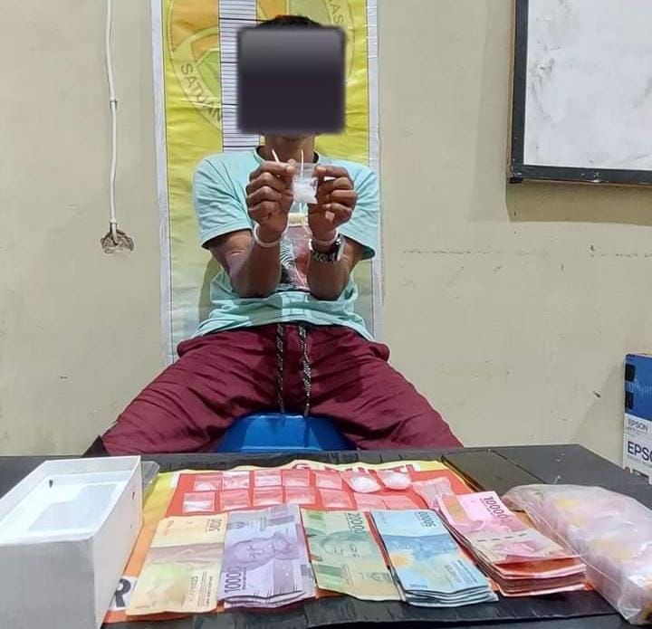 Dari tangan pelaku petugas berhasil menemukan barang bukti berupa 15 paket sabu berat kotor 18,09 gram, 13 bungkus plastik klip. sejumlah uang diduga hasil penjualan narkoba.