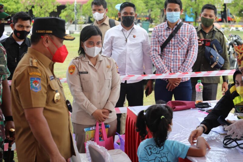 PALANGKA RAYA. Kaltengtimes.co.id – Vaksinasi bagi anak-anak usia 6 s/d 11 tahun kini dimulai. Gubernur Kalimantan Tengah, H.Sugianto Sabran langsung meninjau kegiatan vaksinasi anak-anak tersebut di Lapangan Barigas Polda Kalteng, Selasa (28/12). Gubernur menyampaikan vaksinasi sangat penting agar kekebalan kelompok atau Herd Imunity segera terwujud. Menurut Gubernur, hingga saat ini vaksinasi tahap pertama untuk dewasa sudah mencapai 74% lebih dan untuk tahap kedua sudah mencapai 45%. “Di Kalteng, Alhamdulilah vaksinasi tahap pertama untuk dewasa 74% lebih, dan untuk tahap kedua sudah mencapai 45%”, ucap Gubernur.