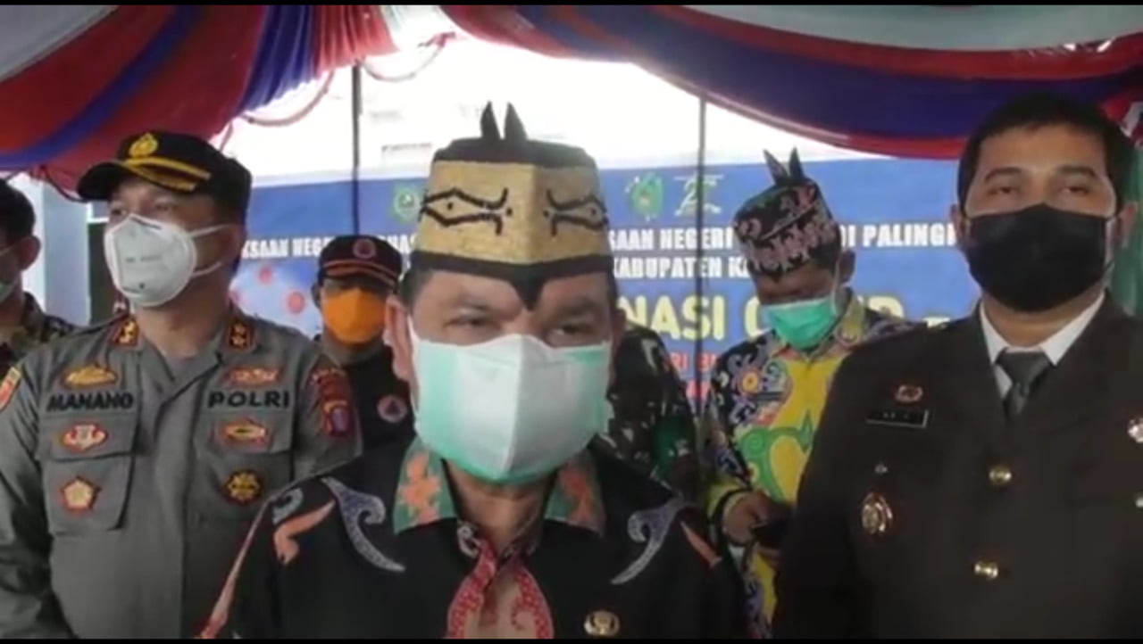 PALANGKA RAYA, Kaltengtimes.co.id – Antusias masyarakat Kabupaten Kapuas cukup tinggi untuk mendapatkan vaksin covid-19, namun sayangnya ketersediaan obat-obatan dan suntik vaksin covid-19 tersebut sangat kurang dan tidak menentu jumlahnya. Hal tersebut diungkapkan Bupati Kapuas, Ben Brahim S Bahat usai pelaksanaan Apel Operasi Yustisi Tim Pemburu Covid-19, Maskerisasi, Vaksinasi dan Rapid Tes Massal, baru-baru ini. Sebagai contoh kata Ben, saat dilaksanakan vaksinasi di lingkungan Kejari kapuas dari target 200 orang, vaksin yang tersedia hanya 150 orang. Karena itu pihaknya berharap agar pendistribusian obat vaksin covid-19 baik melalui Pemerintah Provinsi Kalimantan Tengah maupun Pemerintah Pusat untuk Kabupaten Kapuas cukup tersedia atau dengan kata lain dengan jumlah banyak sehingga mampu mencukupi vaksinasi hingga ke pelosok-pelosok Kabupaten Kapuas. Terkait ketersediaan oksigen, menurut Ben Brahim saat ini stok nya memang masih cukup. namun pihaknya berupaya untuk menyetok lebih banyak lagi oksigen, dalam arti kata sedia payung sebelum hujan. Terkait langkah-langkah mengantisipasi lonjakan kasus terkonfirmasi positif covid-19 di Kabupaten Kapuas, Ben Brahim mengatakan pihaknya telah menyiapkan Hotel Permata Inn yang terletak di Jalan Seroja Kuala Kapuas. Kepada sejumlah awak media, Ben Brahim S Bahat mengatakan, kendala yang dihadapi Pemerintah Kabupaten Kapuas saat ini adalah suntik vaksin berikut obat-obatan covid-19 yang tidak menentu ketersediaan nya. Padahal disatu sisi petugas kesehatan dan pihak terkait telah bekerja semaksimal mungkin untuk mencegah dan menanggulangi penularan covid-19, salah satunya dengan cara jemput bola bagi warga hingga di tingkat pedesaan untuk menerima vaksin yang dilaksanakan di puskesmas setempat.
