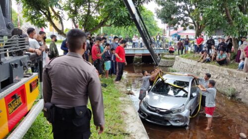 Berselang setengah jam, mobil berhasil dievakuasi dari dalam parit. banyaknya masyarakat yang ingin menyaksikan proses evakuasi arus lalu lintas di Jalan sempat macet. zal