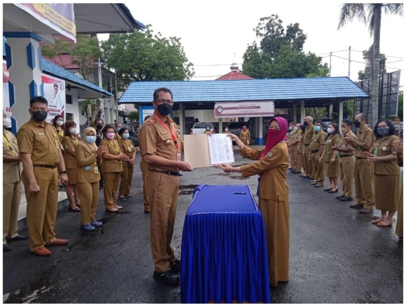 PALANGKA RAYA. Kaltengtimes.co.id – Aparatur Sipil Negara (ASN) Dinas Kelautan dan Perikanan (Dislutkan) Provinsi Kalimantan Tengah dituntut mampu bekerja inovatif dan penuh semangat dalam menyelesaikan tugas-tugas, terutama dalam mendukung percepatan pembangunan sektor kelautan dan perikanan tahun 2022. Hal tersebut ditegaskan Kepala Dinas Dislutkan Provinsi Kalimantan Tengah, H. Darliansjah, saat penandatanganan Berita Acara Kesepakatan Bersama Percepatan Pembangunan Sektor Kelautan dan Perikanan, usai kegiatan Upacara Bendera, di Halaman Kantor Dislutkan, Senin (10/1/22).