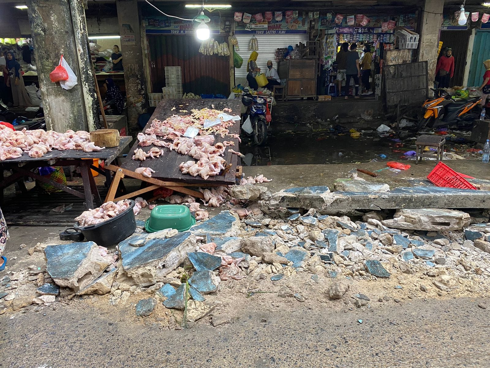 Akibatnya, runtuhan beton pun menimpa salah seorang pedagang ayam bernama Zahroh diketahui sedang hamil 8 bulan. saat itu sedang menyusun dagangannya di Pasar Subuh Antasari.