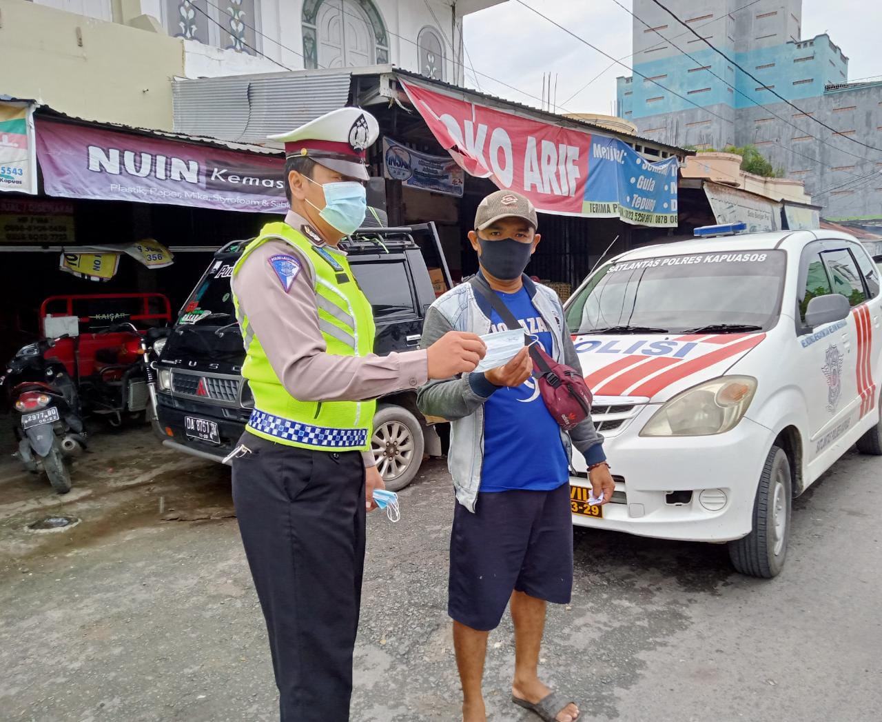 Saat itu, selain membagikan masker kepada para warga pengguna jalan, arahan juga disampaikan terkait kewajiban menggunakan masker yang merupakan bagian dari protokol kesehatan dalam rangka pencegahan Covid-19 dan tertib dalam berlalu lintas.