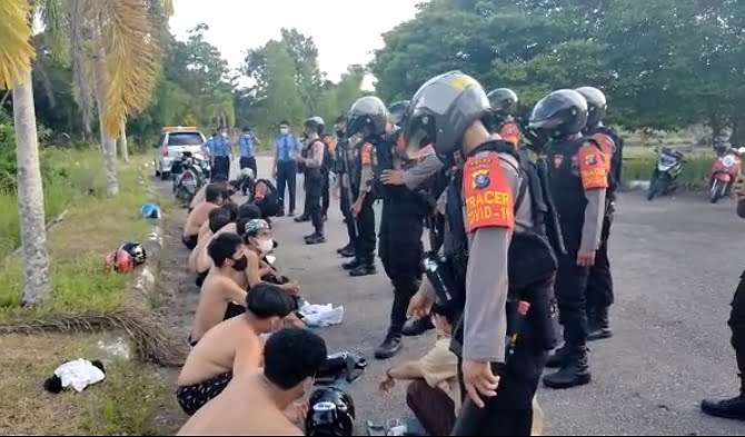 Palangkaraya, klaltengtimes.co.id, Tim Raimas Back Bone Ditsamapta Polda Kalimantan Tengah mengamankan belasan pelaku balap liar di kawasan Bandara Tjilik Riwut Kota Palangka Raya, Kamis (29/7/2021) Pukul 17.00 WIB.