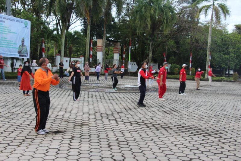 PALANGKA RAYA. Kaltengtimes.co.id – Jajaran Dinas Tenaga Kerja dan Transmigrasi (Disnakertrans) Provinsi Kalimantan Tengah menggelar Senam Sehat di halaman Kantor Disnakertrans setempat, Jum’at (21/1). Senam Sehat tersebut digelar dalam rangkaian memperingati Bulan Keselamatan dan Kesehatan Kerja (K3) serta untuk memberikan motivasi kepada Aparatur Sipil Negara (ASN) agar melaksanakan K3 ditempat kerja masing-masing pada era digitalisasi dimasa pandemi Covid-19 saat ini untuk mewujudkan Kalteng Makin Berkah.