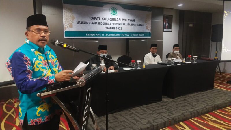 PALANGKA RAYA, Kaltengtimes.co.id – Pj. Sekretaris Daerah Provinsi Kalimantan Tengah, H. Nuryakin mengatakan, peran dan tugas Majelis Ulama Indonesia (MUI) Kalimantan Tengah ke depan, terutama terkait era kemajuan teknologi dan informasi akan semakin komplek. “Karena itu saya harapkan, MUI sebagai Khadamul Ummah mampu menyelesaikan semua persoalan yang dihadapi umat, memelihara persatuan dan kesatuan, menciptakan suasana kondusif dan menjaga kehidupan umat beragama untuk tetap rukun dan damai,’’ kata H. Nuryakin saat membacakan sambutan tertulis Gubernur Kalimantan Tengah, H. Sugianto Sabran, ketika membuka Rapat Kerja Wilayah (Rakerwil) Majelis Ulama Indonesia (MUI) Provinsi Kalimantan Tengah, Minggu (23/1/2022), bertempat di Hotel Neo, Palangka Raya.