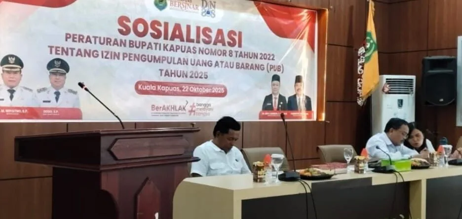 24 Oktober 2025KUALA KAPUAS – Pemerintah Kabupaten Kapuas melalui Dinas Sosial melaksanakan sosialisasi Peraturan Bupati Kapuas Nomor 8 Tahun 2022 tentang Tata Cara Penyelenggaraan Pengumpulan...